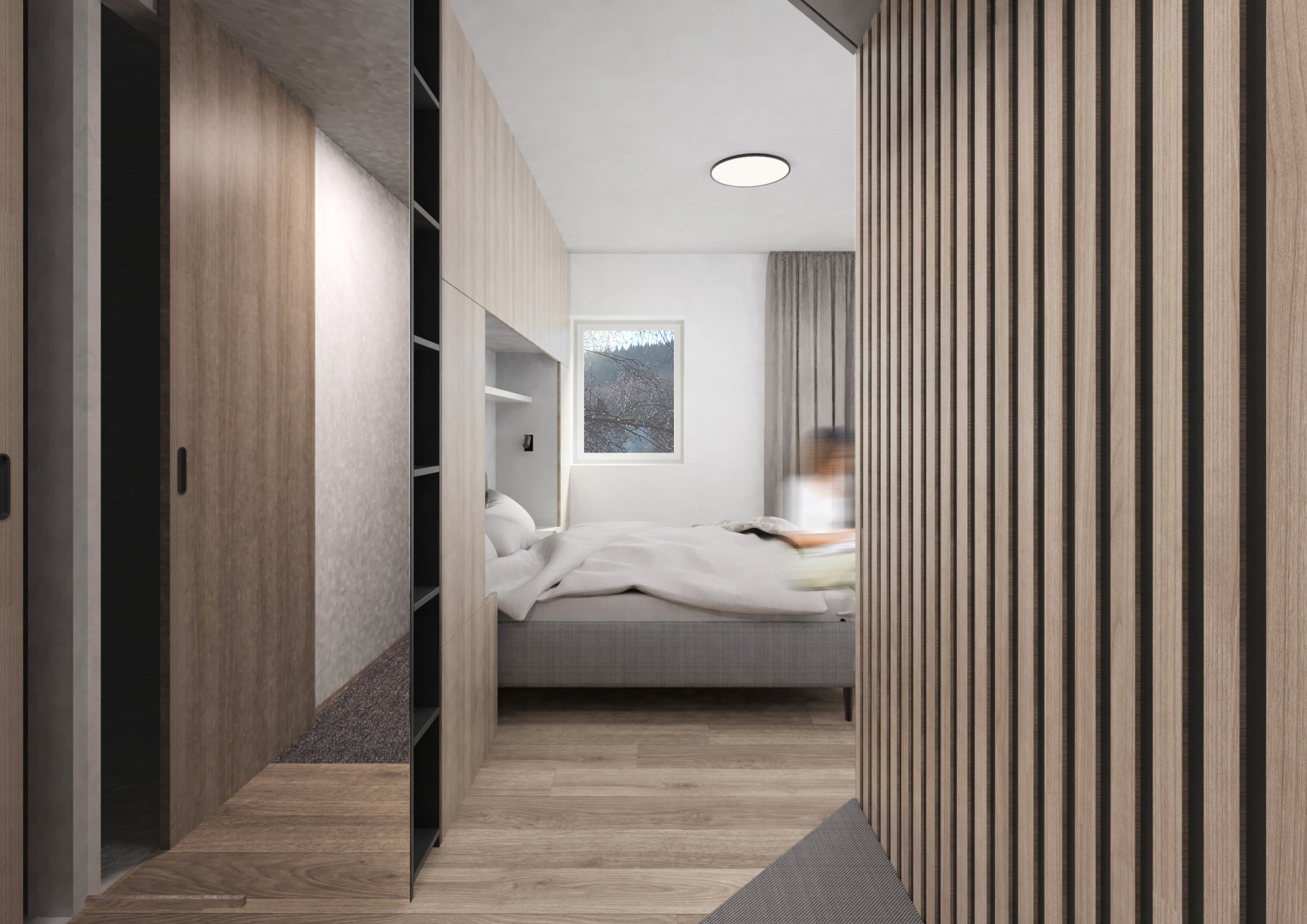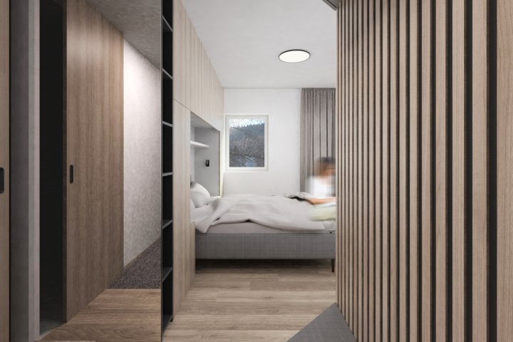 Citlivě zrekonstruovaná horská chata, která respektuje místní tradici, nabídne pouze 12 jedinečných apartmánů. 🏔️ O vaše pohodlí se postarají vyhrazená parkovací místa přímo u domu (z toho 6 zastřešených) a také prostorné kóje pro sportovní vybavení, přístupné zevnitř i zvenčí – ideální jako lyžárna či kolárna. 🎿🚴♂️