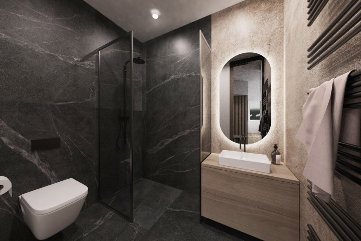 Apartmány Albrechtice projdou citlivou, ale zásadní rekonstrukcí, která propojí estetiku, kvalitu a komfort. Jednotky jsou dokončeny ve standardu fit-out – tedy kompletně zrekonstruované, s novými rozvody, luxusními koupelnami, zakázkovými kuchyněmi a designovým osvětlením. 🛁🍽️💡